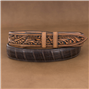 This work of art features hand tooled leather billets with a leaf pattern paired with Caiman leather in chocolate brown. Each Sunset Trails belt is made by the expert hands of our artisans in Salina, Utah where we've been working with leather for over 140 years.
